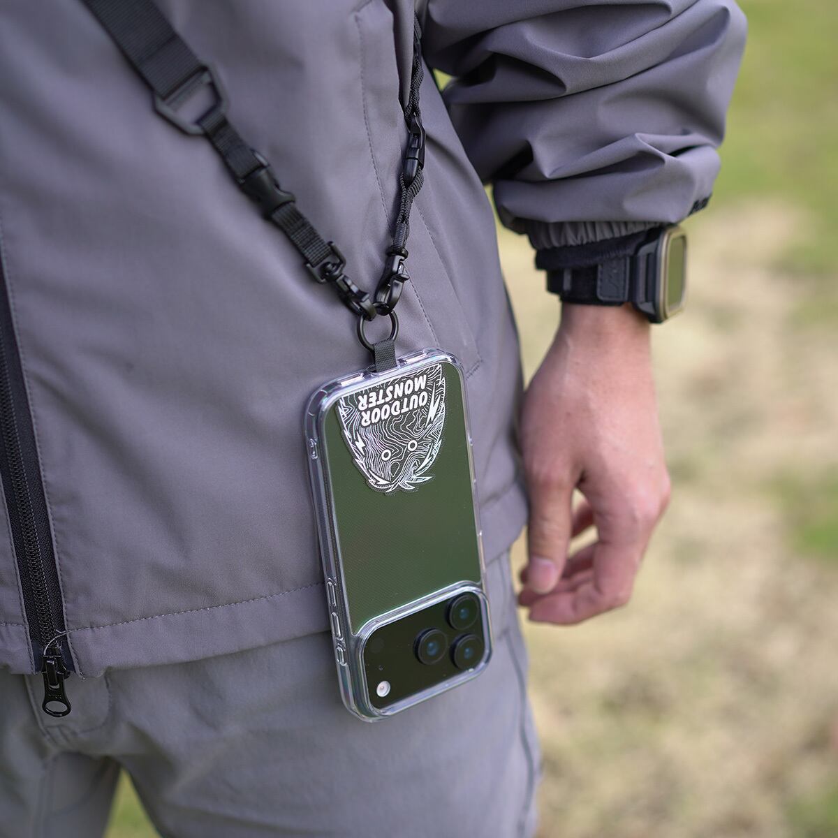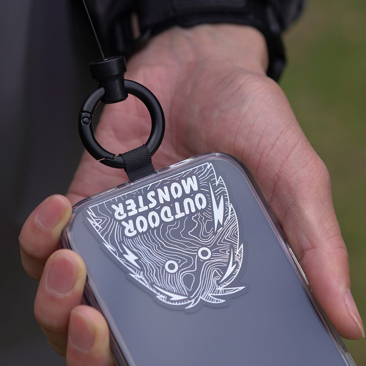 カラビナループがないケースにも、カラビナやスマホショルダーストラップなどが装着できるようカスタム可能です。