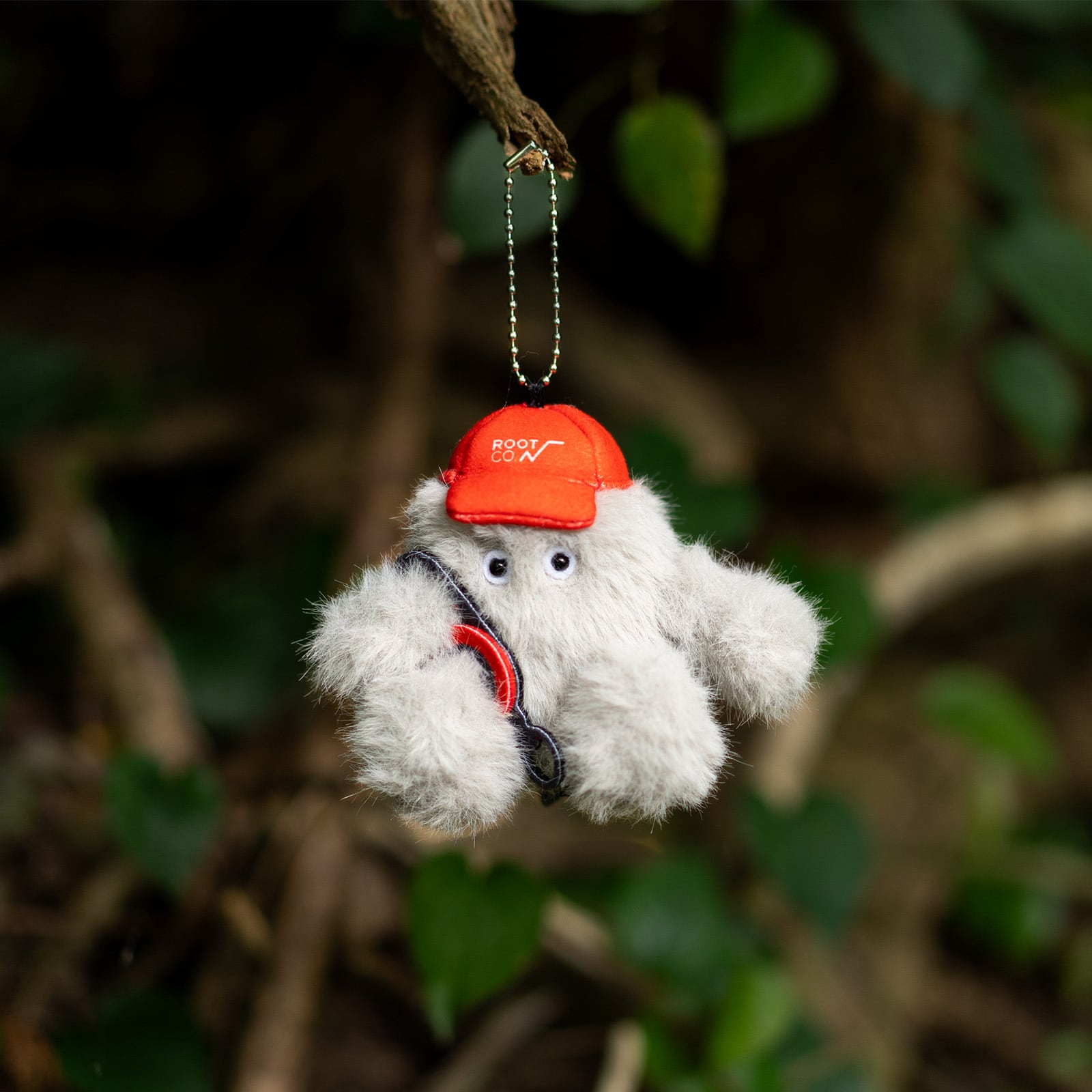 ふさふさの手のひらサイズぬいぐるみマスコットとして登場。気づけばあなたの服に引っかかり、アウトドアへと導いてくれる自由の案内人です。